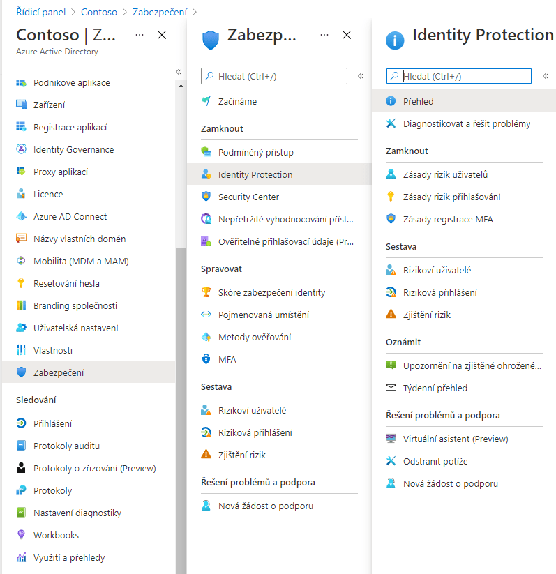 V AAD admin centru najdeme Identity Protection.