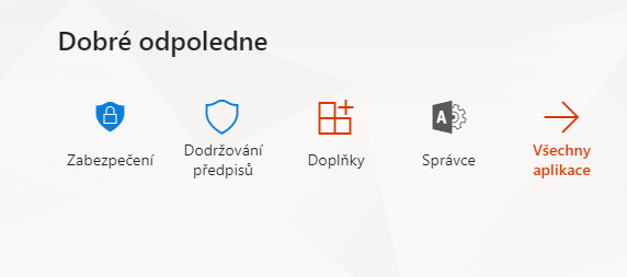 Nejprve se naším účtem přihlásíme na stránku portal.office.com. Poté, co se přihlásíme, vidíme shrnutí našich aplikací. Zde vybereme Správce.
