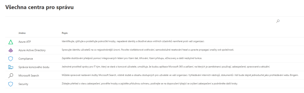 Nás bude zajímat položka Všechna centra pro správu. Rozklikneme ji a tím se nám zobrazí několik položek.