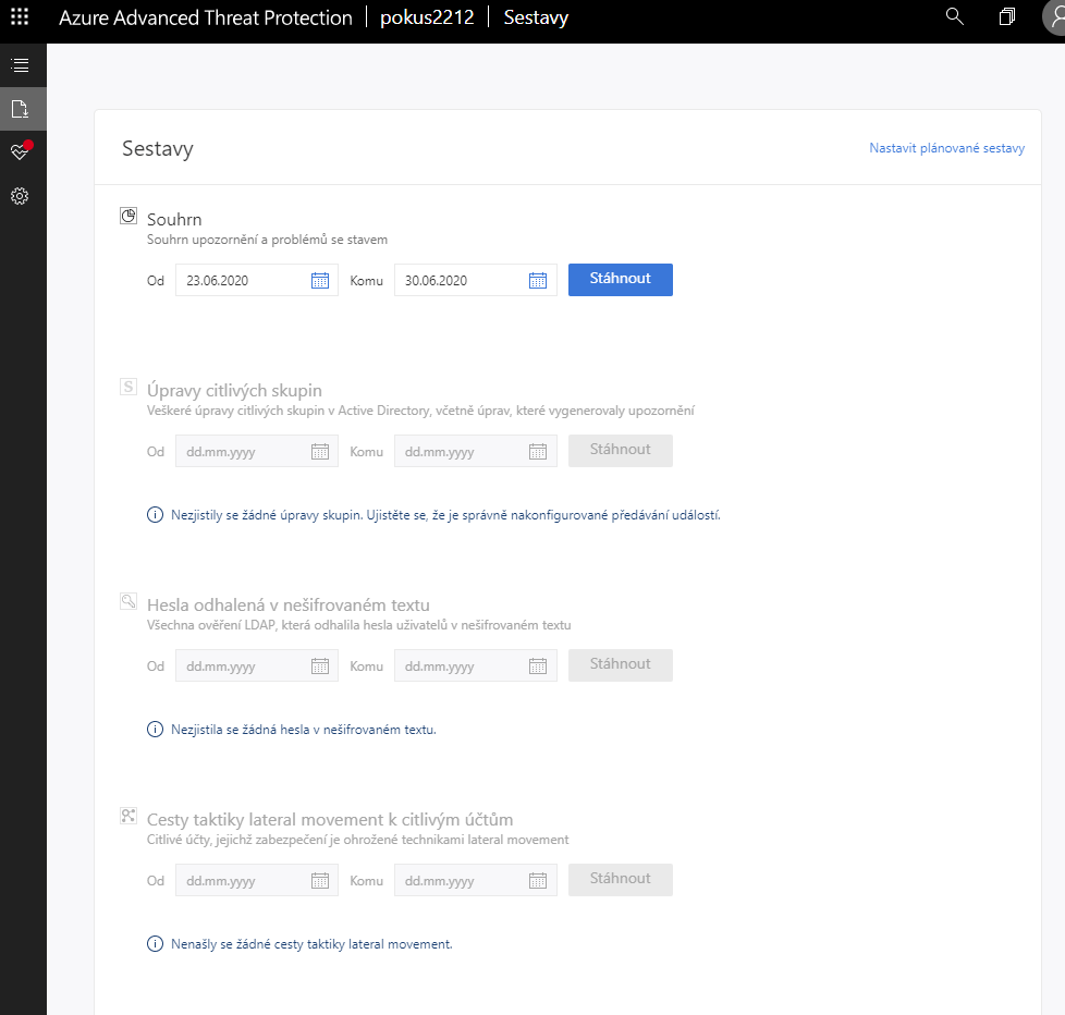 Práce s portálem Azure ATP