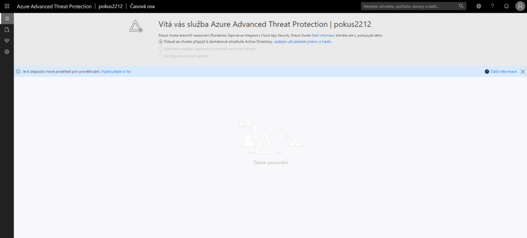 Zde je náš cíl hlavní položka Azure ATP, proto na ní klikneme a otevře se nám prostředí Azure ATP.