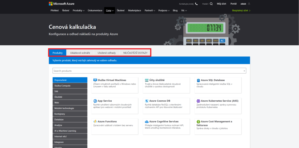 Zajímalo vás někdy, který Azure produkt je pro vás nejvýhodnější? Kolik vás bude stát služba Virtual Machines, nebo Azure SQL Database? Nebo jen chcete zjistit kolik přibližně ušetříte rezervací? Přesně s tím vám pomůže Cenová kalkulačka.