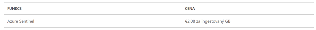 Příklad ceny za průběžné platby (k datu 7.3.2020, pro aktuální cenu se podívejte na ceník Azure Sentinel)