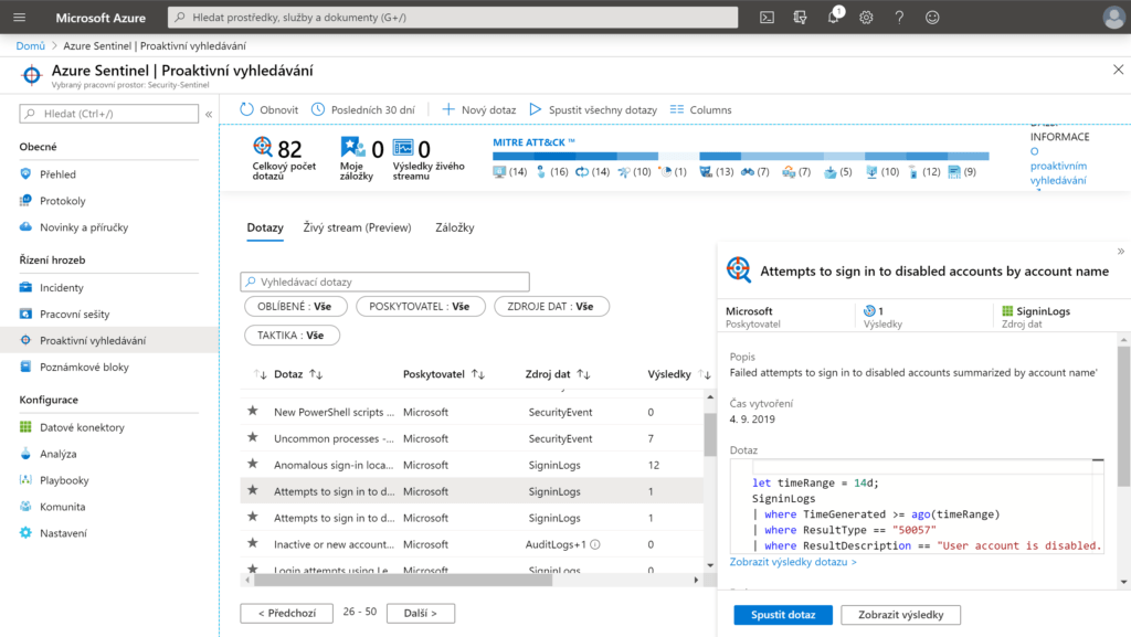 Azure Sentinel obsahuje výkonné nástroje pro hledání a dotazování – ty fungují na základě Mitre Frameworku. Ten umožnuje proaktivně „lovit” bezpečnostní hrozby napříč daty vaší organizace.