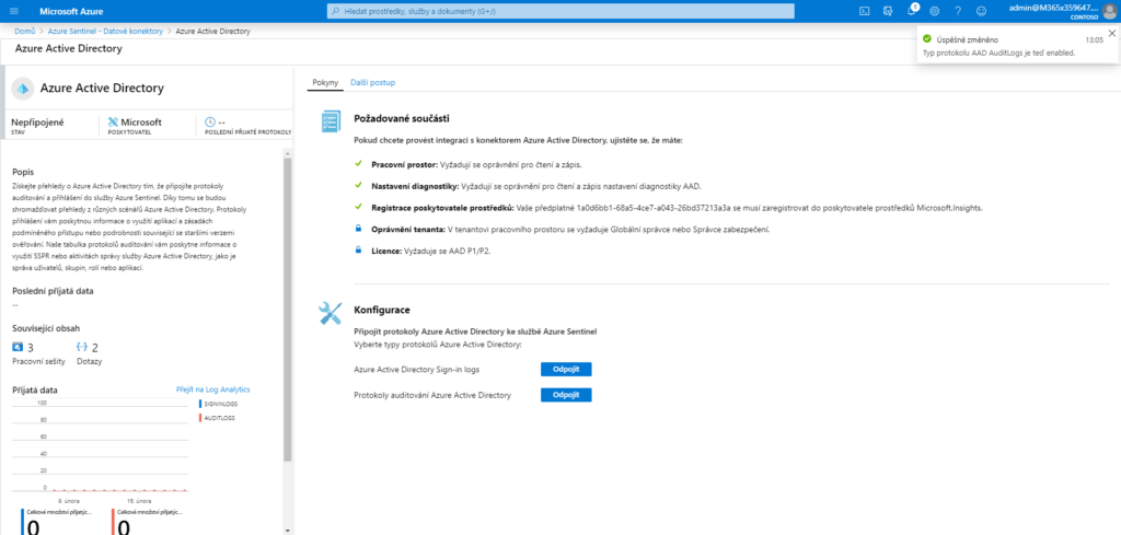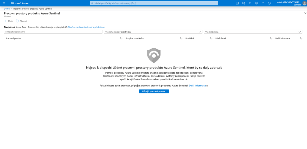 Nyní jste se úspěšně dostali do Azure Sentinel a můžete využívat jeho služeb.