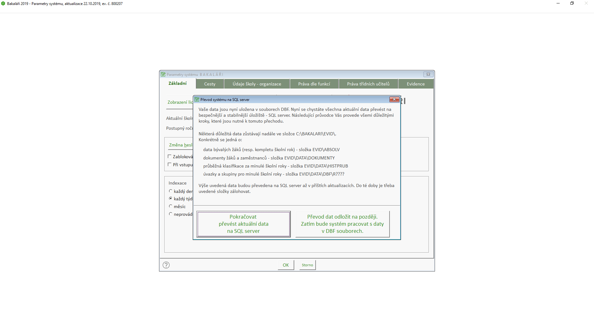 Návod na aktualizaci Bakalářů na novou verzi pak naleznete ve třetím dílu.