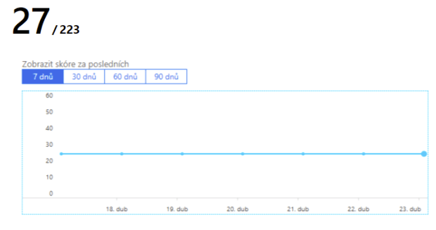 V pravo vidíme již výše zmíněný graf, který ukazuje, jak se naše Secure Score mění.