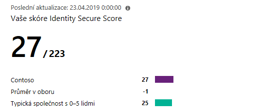 Identity Secure Score je číslo, které určí míru vašeho zabezpečení. Toto číslo jde dále využít k porovnání s ostatními školami či instituty stejného zaměření a k vylepšení vašeho zabezpečení. Také objektivně odráží úroveň vašeho zabezpečení a navrhuje, jak vaše zabezpečení zlepšit.