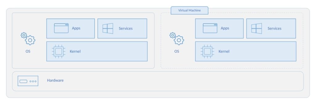 Na rozdíl od kontejnerů provozují VM kompletní operační systém - včetně vlastního jádra.