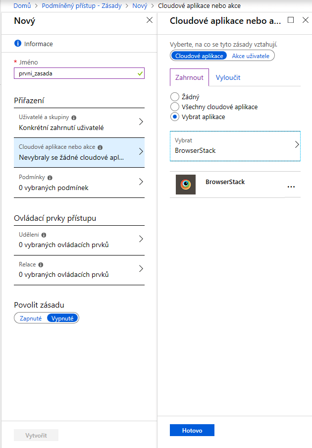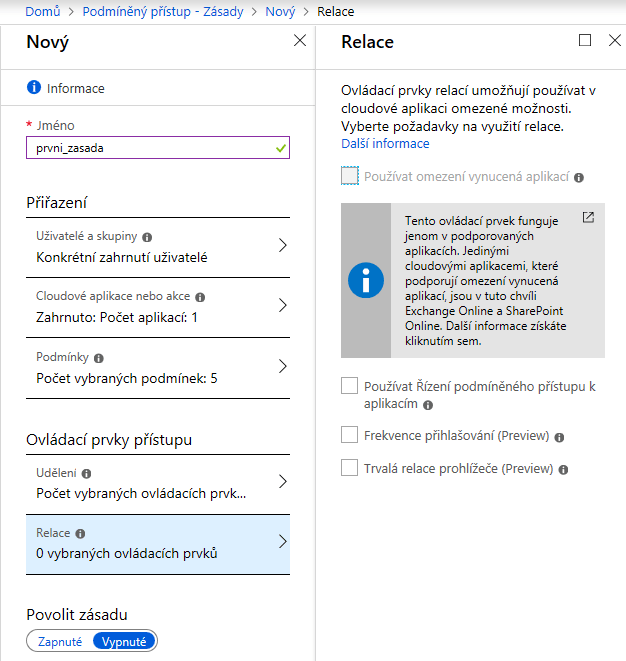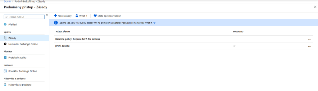 Když zásadu povolíme, ukáže se nám v záložce Podmíněného přístupu: