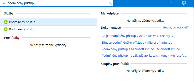 Nejdříve si v Azure najdeme Podmíněný přístup: