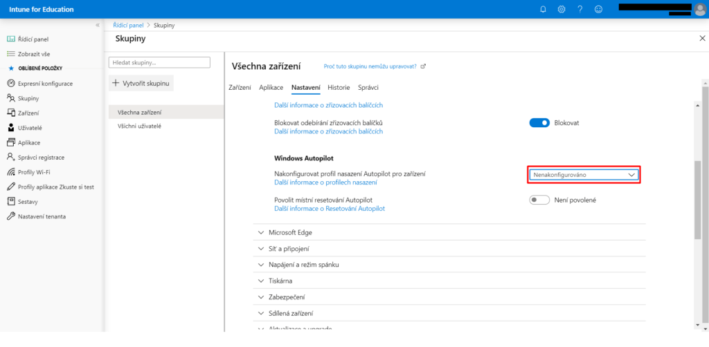 Nyní pojďme nakonfigurovat výchozí profil nasazení Autopilot pro skupinu.