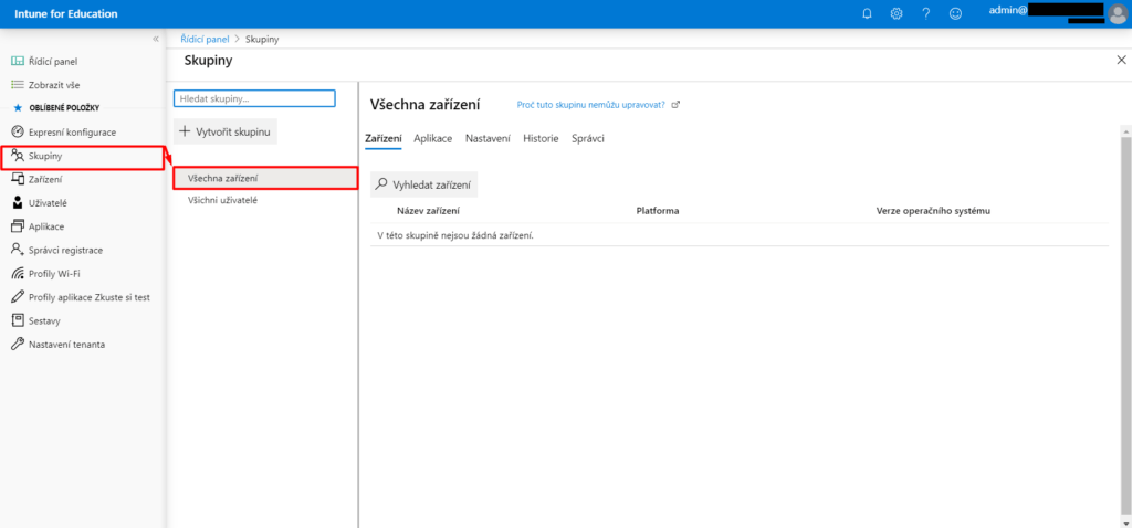 V nabídce na levé straně přejděte na Skupiny > Všechna zařízení.