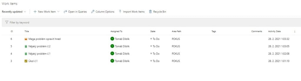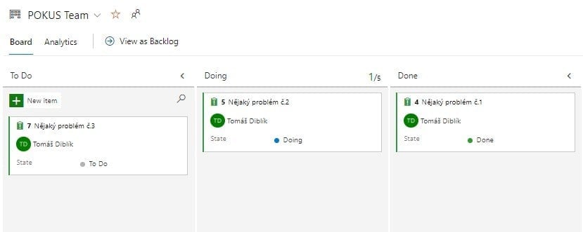 V Azure Boards vidíte všechny své zadané úkoly a řídíte/třídíte si je, jako tým. Každý tým má svůj vlastní Azure Boards.