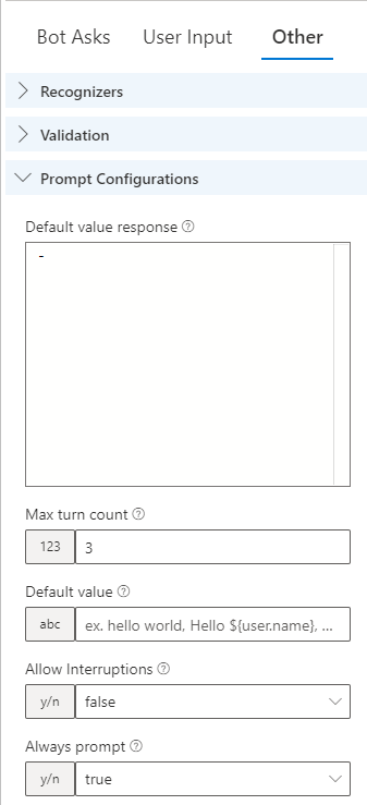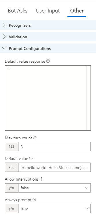 Dále v Other nastavíme, aby se systém uživatele pokaždé zeptal, i když je proměnná user.city už vyplněná. To nastavíme pomocí přepnutí Alway prompt na true.