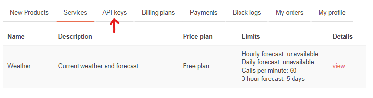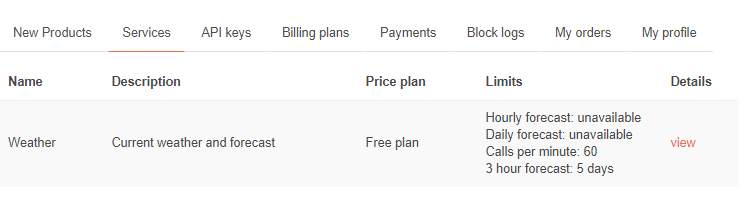 A na této stránce byste měli vidět službu Weather, stejně jako na obrázku. Pokud ji nevidíte, tak přepněte na hlavní stránku a tam si znovu vyberte předplatné, jako jsme si to ukazovali na začátku.