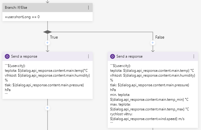 -```${user.city}: teplota: ${dialog.api_response.content.main.temp} °C vlhkost: ${dialog.api_response.content.main.humidity} % tlak: ${dialog.api_response.content.main.pressure} hPa min. teplota: ${dialog.api_response.content.main.temp_min} °C max. teplota: ${dialog.api_response.content.main.temp_max} °C rychlost větru: ${dialog.api_response.content.wind.speed} m/s```