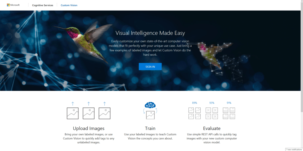 Jak už jsem avizoval, nejedná se o nic komplikovaného. Služba je součástí balíčku Azure. Najdeme ho na stránce Microsoft Azure v menu po přihlášení nebo přímo na stránkách www.customvision.ai.