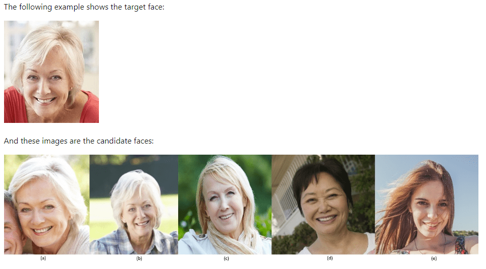 Face verification porovnává dvě tváře vedle sebe a na základě jejich podobnosti vyhodnocuje, zda jsou tváře totožné, či nikoli. Ke každé z porovnávaných tváří přidělí počet bodů podobnosti, dle kterých vyhodnotí žebříček nejvíce podobných tváří.