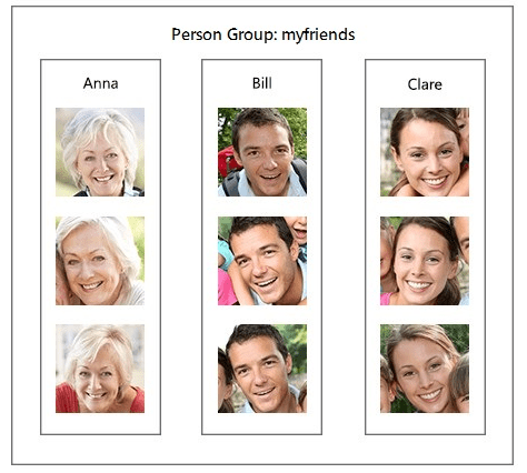 Face grouping vytvoří skupinu, do které přidělí uživatele s nejvíce podobnými rysy. Jeden uživatel může být přiřazen do více skupin. Když aplikace tvář nezná, tak jí vytvoří samostatnou skupinu, do které se můžou postupně přidávat podobné tváře, ať už na základě stejných rysů, podobné emoce a výrazu mimiky nebo tvaru obličeje.