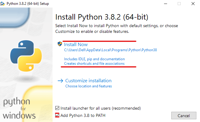 Nyní zaškrtneme políčko Add Python 3.8. to PATH, aby byl přístupný pod příkazem python.