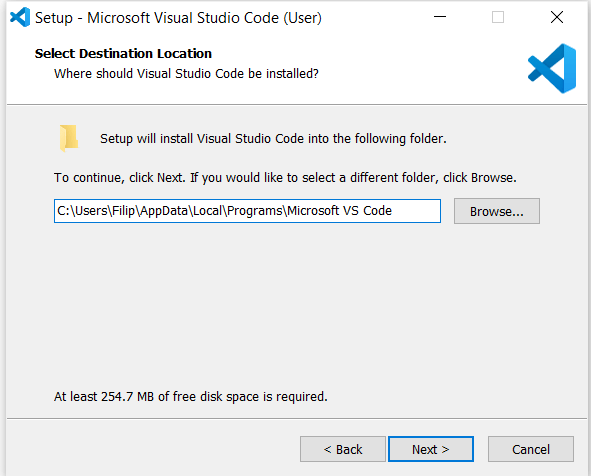 Vybereme instalační destinaci, klikneme "Next," necháme další stránku se zástupci jak je, a klikneme "Next" ještě jednou.