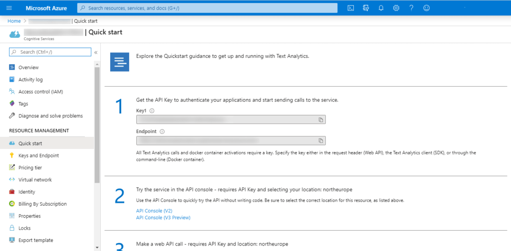 const textAnalyticsClient = new TextAnalyticsClient( endpoint, new TextAnalyticsApiKeyCredential(key) );