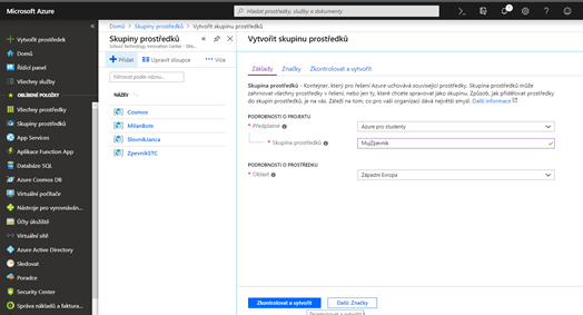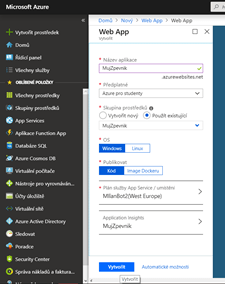 Než přejdeme k nahrávání aplikace, je třeba si vytvořit prostředek přes Azure portál, do kterého aplikaci nahrajeme.