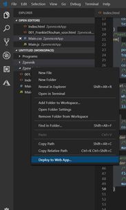Přes Visual Studio Code klikneme pravým tlačítkem na složku, ve které máme nahrané všechny soubory a zvolíme možnost Deploy to Web App/Nahrát do webové aplikace.