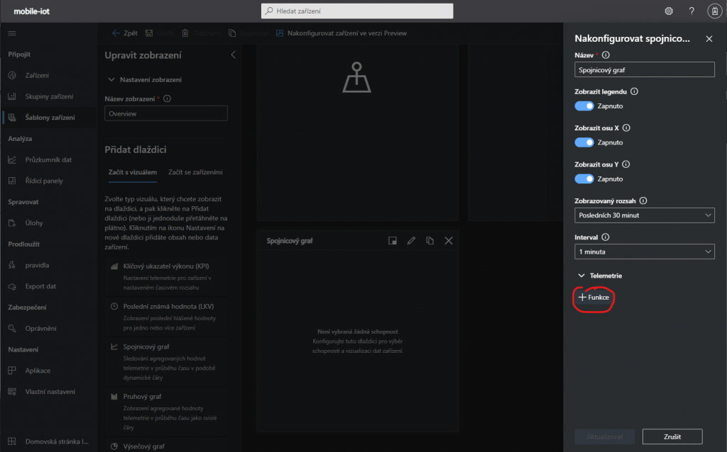 Kliknutím na +Funkce vyberu data, která budu zobrazovat.