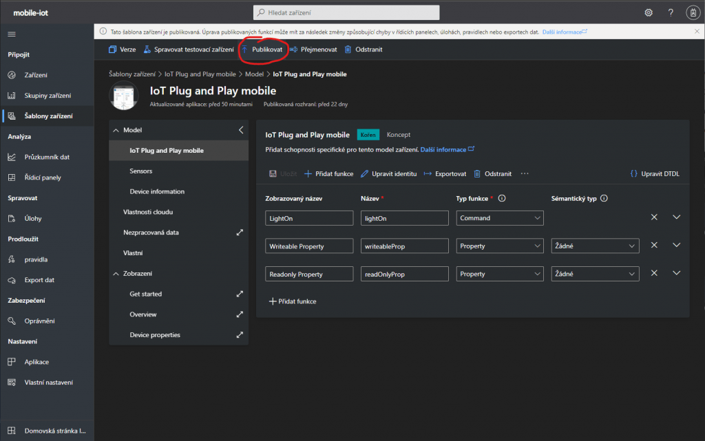 A nakonec Publikovat pro aplikování změn v šabloně.