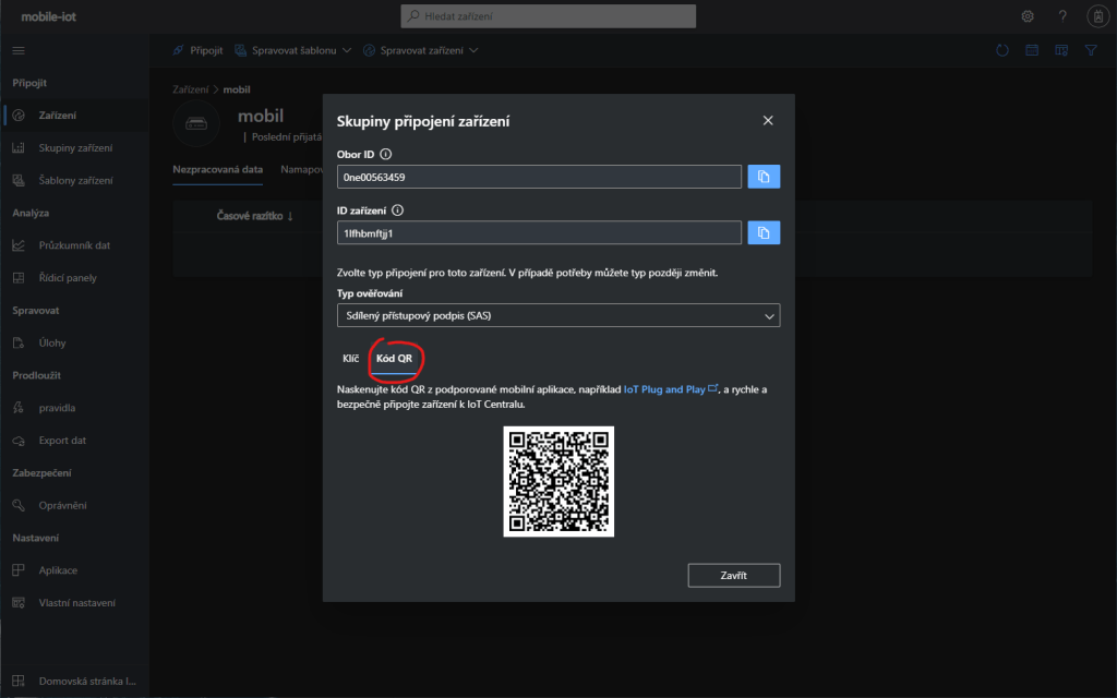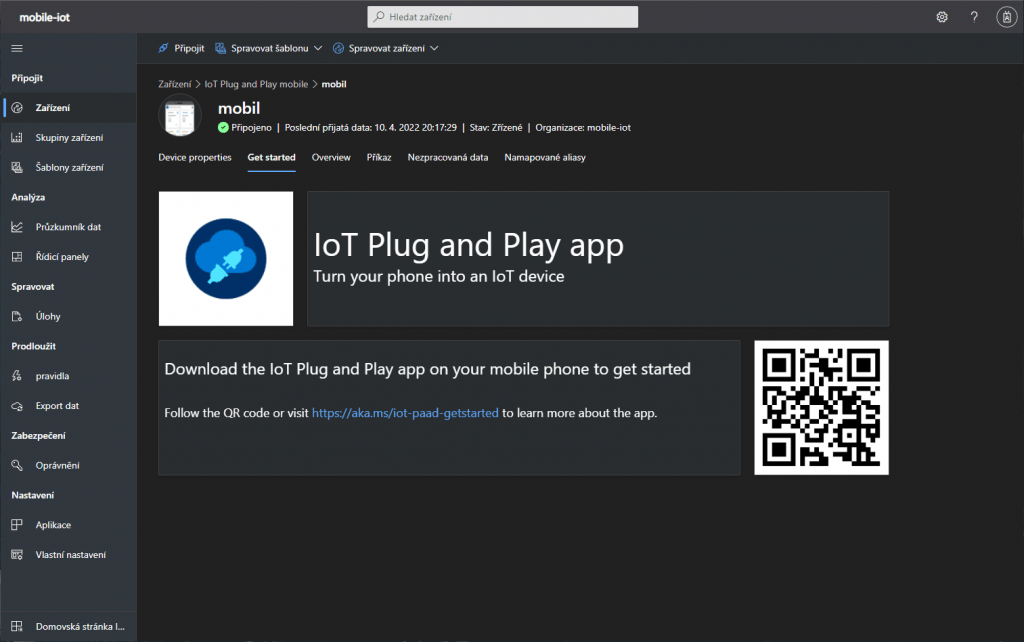 Instalace mobilní aplikace a připojení k Azure IoT Central