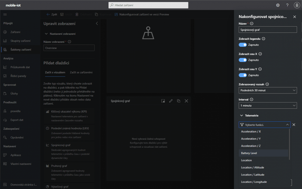 V záložce Zařízení vidím přidaný graf.