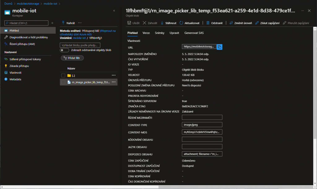 Po nahrání se fotka objeví v kontejneru na účtu uložiště.