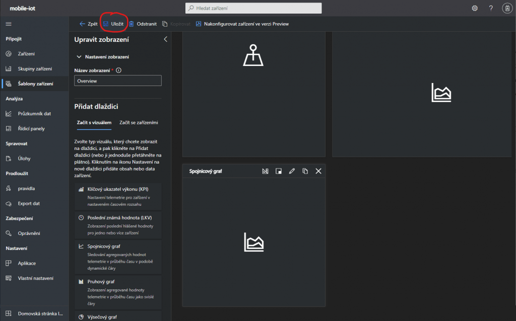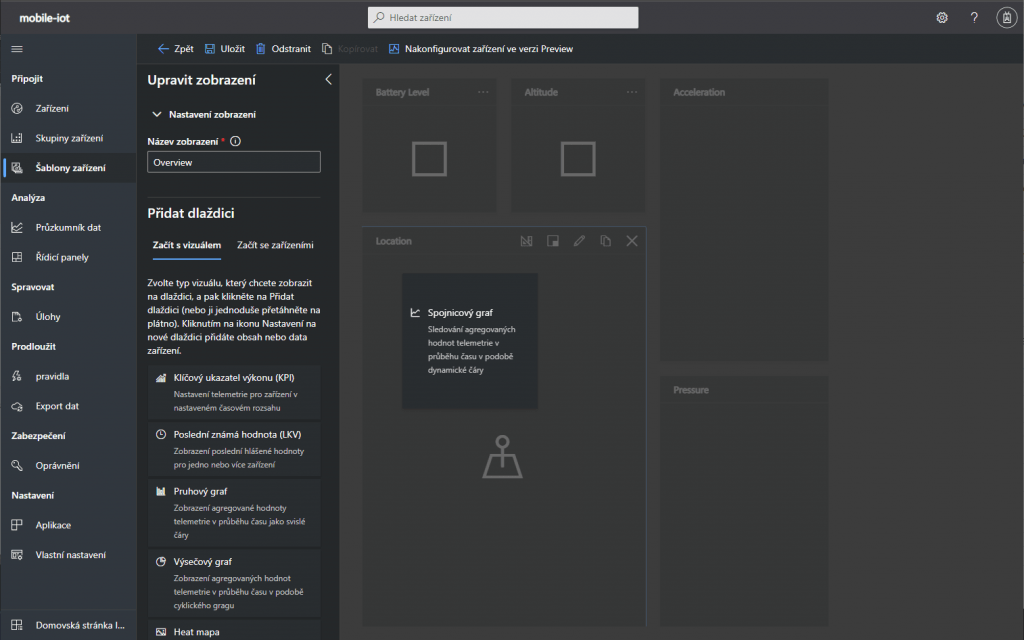 Přehled panelů v IoT Central