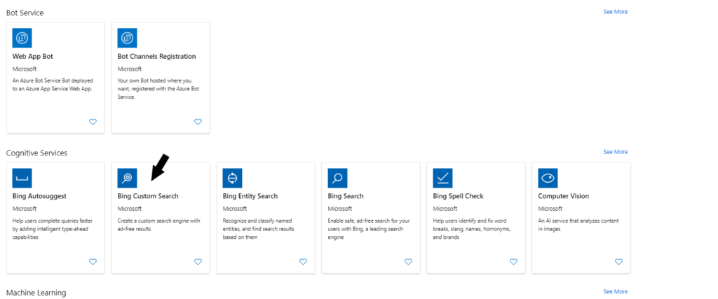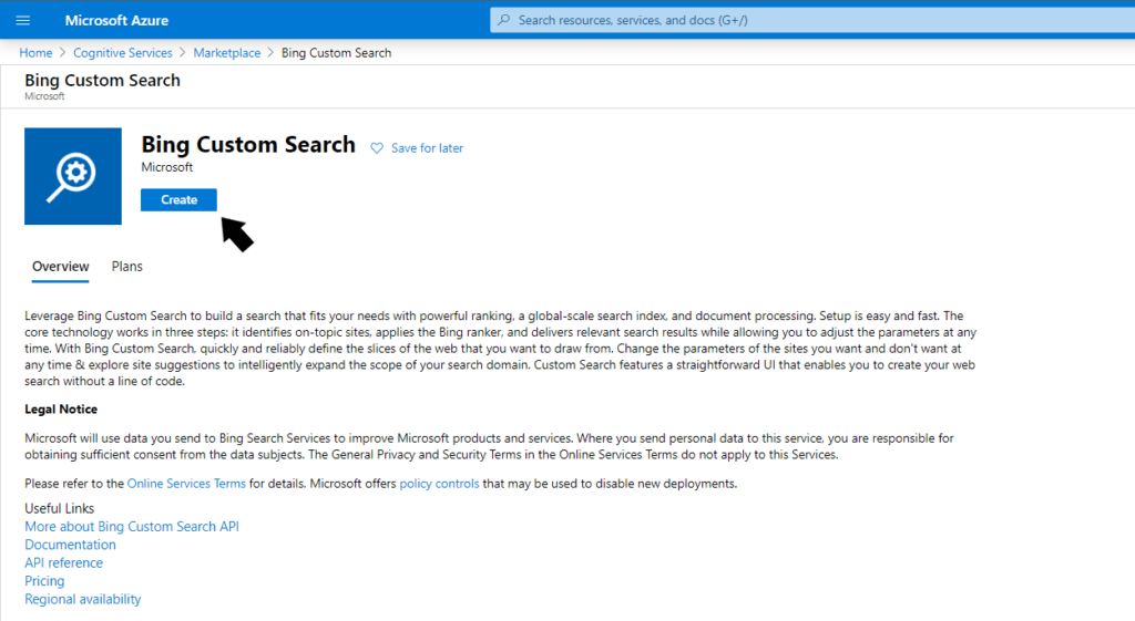 Klikneme na ikonu Bing Custom Search.