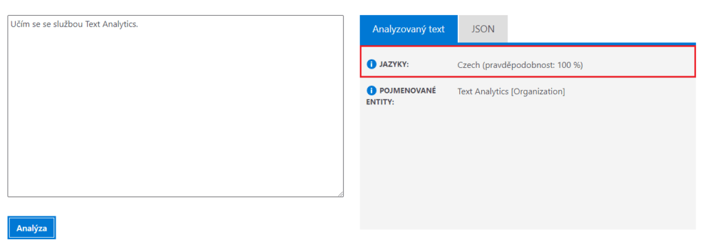 Služba Text Analytics vám zjednodnoduší prácí, při pracování s dlouhými články a dokumenty. Díky této službě v článku jednoduše vyhledáte klíčová slova a fráze. Také rozpoznáte jazyk nebo zabarvení textu. Služba nalezne, pojmenuje a propojí entity, které jsou obsaženy v textu (např. lidé, místa, časy, apod.). Více o těchto funkcích se dozvíte dále.