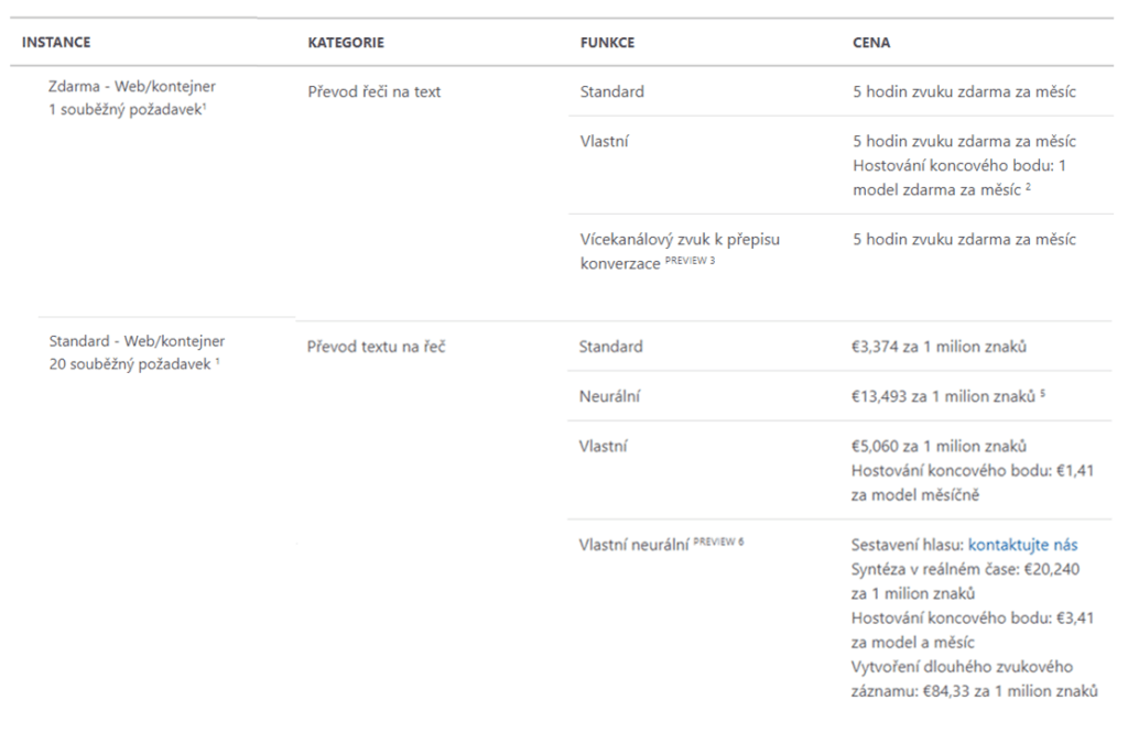 Podrobný ceník na: https://azure.microsoft.com/cs-cz/pricing/details/cognitive-services/speech-services/