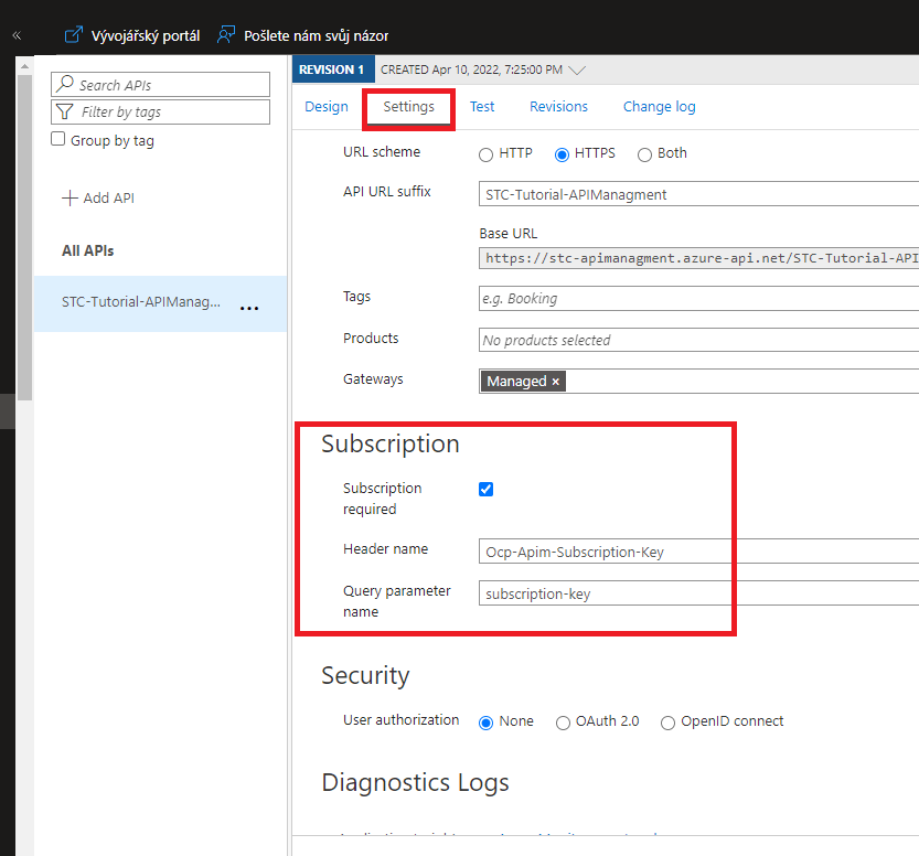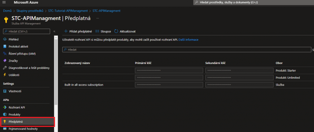 - Služba API Management - námi vytvořená služba.