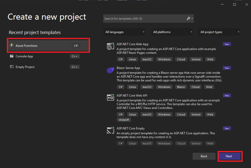 Nyní otevřete Visual Studio a vytvoříte nový projekt. Vyberete Azure Functions, následně HTTP trigger a aplikaci vytvoříte.