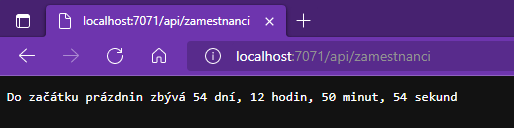 Výstup bude opět vypadat následovně. V tomto případě ale nebude program vracet hodnotu v JSONu, ale v obyčejném textu.