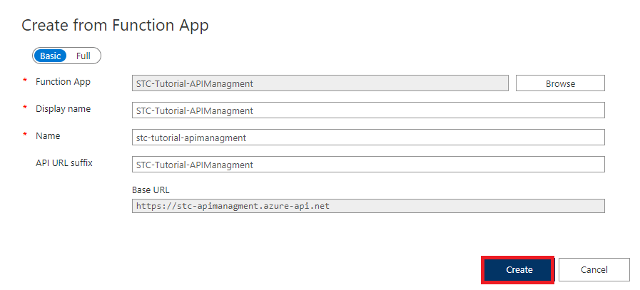 Po kliknutí na vytvoření API z Function App Vám vyjede okno, kde musíte importovat vaší funkci. Dáte vybrat, a vybere vaší vytvořenou funkci a dole dáte opět vybrat.
