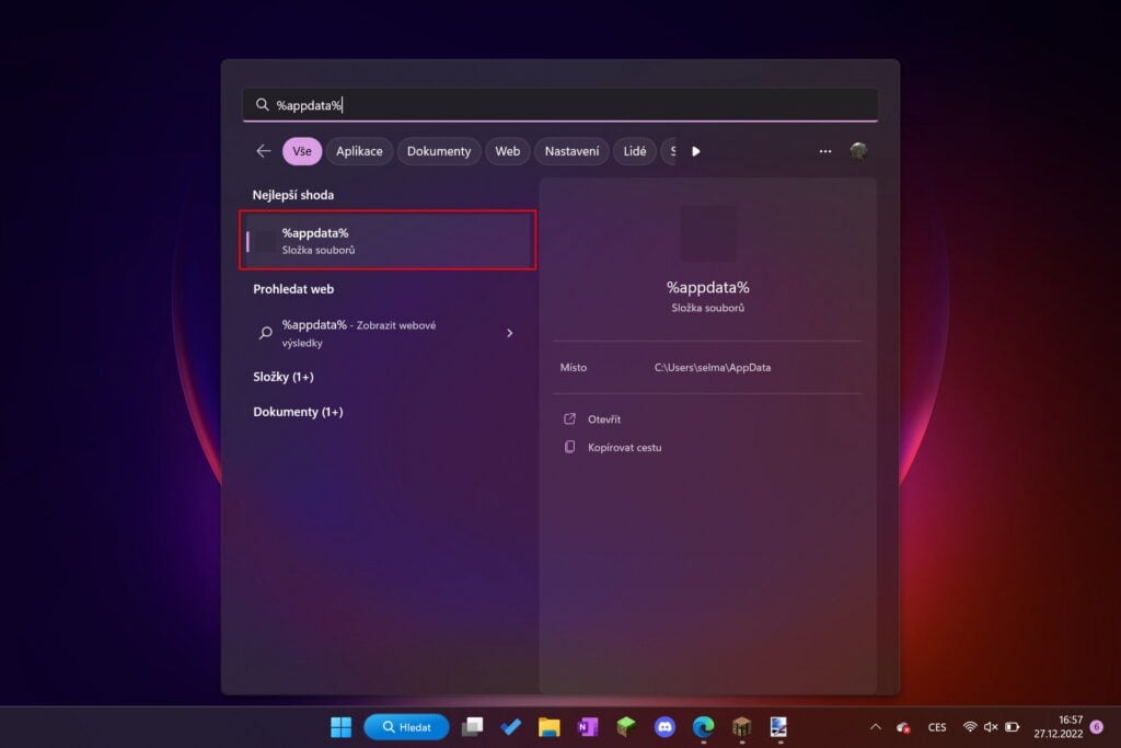a) Ke světu se dostaneme tak, že vyhledáme %appdata% (můžeš také využít klávesovou zkratku Win+R).