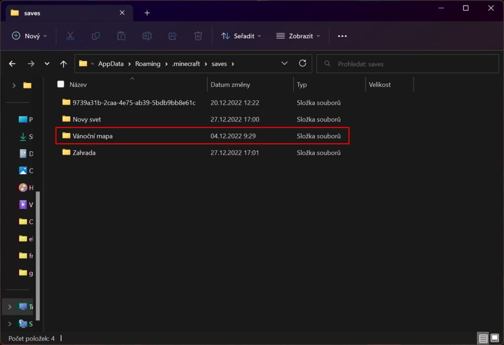 c) Klikneme na saves – zde jsou uloženy všechny naše single-player světy.