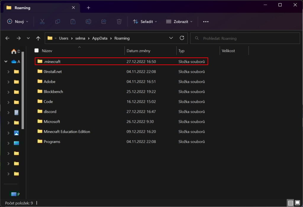 b) Zvolíme .minecraft