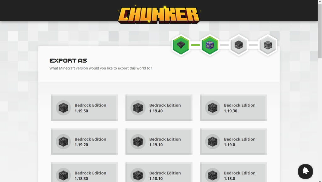 Plynulý převod nám zajistí stránka Chunker.app. Otevřeme si ji a nahrajeme svět. Máme dvě možnosti, jak svět nahrát. Můžeme ho jednoduše přetáhnout do dvou boxů, nebo svět nahrajeme přes průzkumníka souborů. Jakmile je svět připravený, klikneme na tlačítko Start Upload.