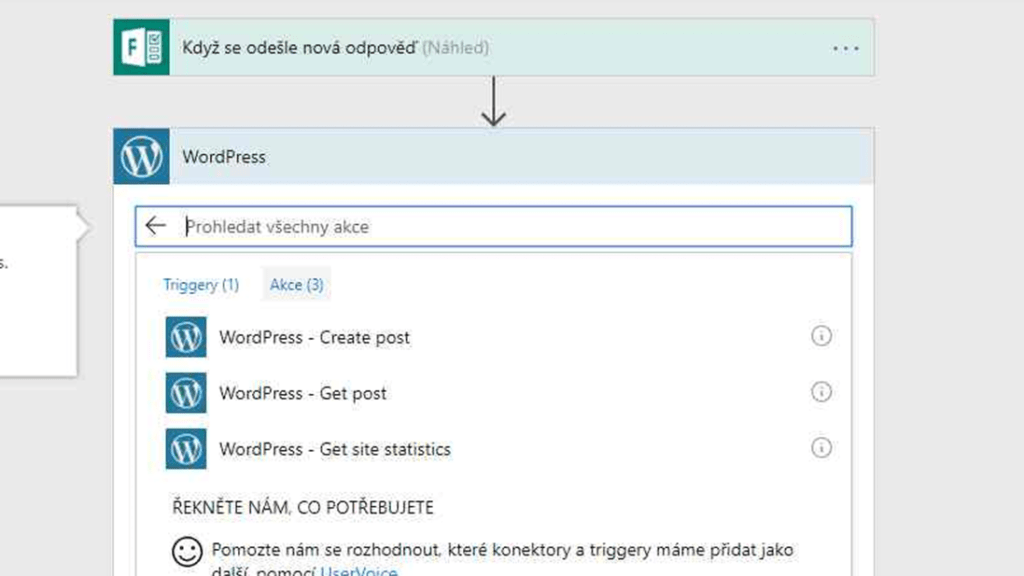 - Propojení se systémem WordPress – Power Automate podporuje i připojení přímo aplikace WordPress, tak toho také patřičně využijte, protože odpovědi vyplněné ve formuláři se tak mohou automaticky a během okamžiku publikovat