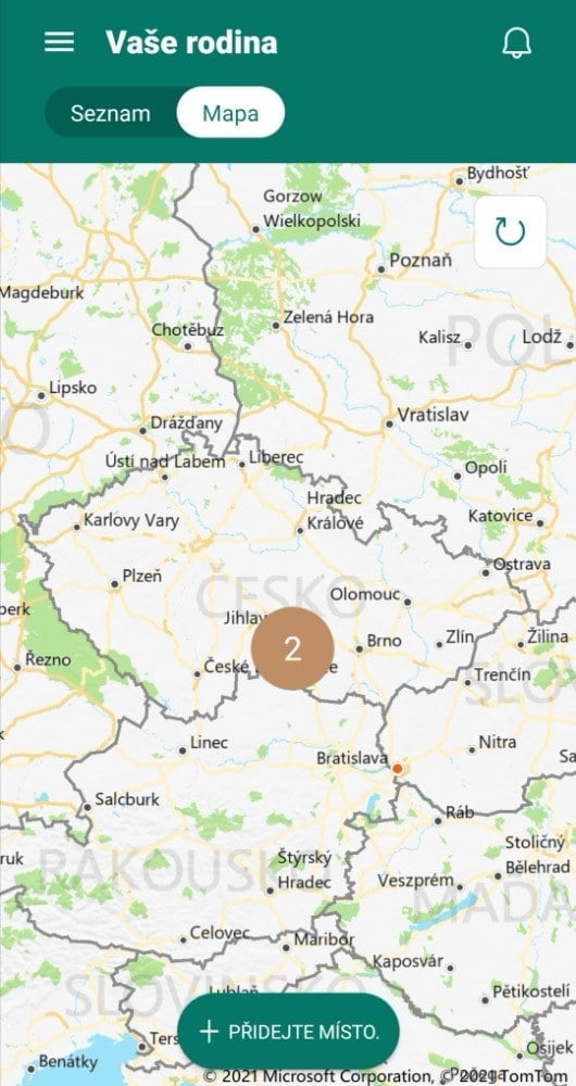 Klepnutím na tlačítko Přidejte místo si můžeme do Oblíbených uložit často navštěvovaná místa, která se pak označí hvězdičkou. Díky uloženým místům bude pro ostatní členy domácnosti jednodušší rozpoznat, kde se právě nacházíme.