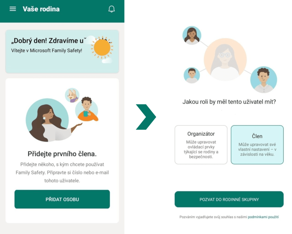 Aplikace je dostupná jak z Google Play, tak i z App Store. Po nainstalování je nutné propojit se s ostatními členy domácnosti tím, že jim pošleme pozvánku přes e-mailovou adresu, a také nastavit jejich roli, organizátor (zpravidla rodič) nebo člen (dítě). Měnit role či přidávat členy můžeme kdykoli v průběhu používání, ovšem je vhodné si v tom udělat pořádek hned od začátku.