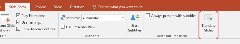 Přednášíte v jiném jazyce a máte strach, že posluchači nepostřehnou všechna slova? Při prezentaci si můžete zapnout titulky, které mohou být jak v jazyce, ve kterém prezentujete, tak i automaticky přeložené. Stačí v kartě Zobrazení zaškrtnout políčko Používat titulky. Také lze nastavit zdrojový i cílový jazyk a to, v jaké části obrazovky se při prezentování budou zobrazovat.